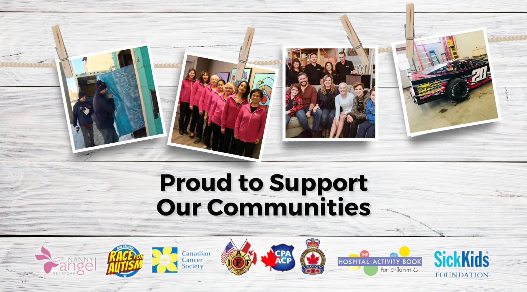 Surplus Furniture and Mattress Warehouse is proud to support several charities, like the Canadian Cancer Society, Sick Kids, Nanny Angel Network, our proud Canadian Military, Canadian Veterans, Firefighters Association, Police Association, Wounded Warriors, local women’s shelters, homeless shelters, child autism initiatives and so many more. We believe that through our community efforts we can make a difference and help support those in need.