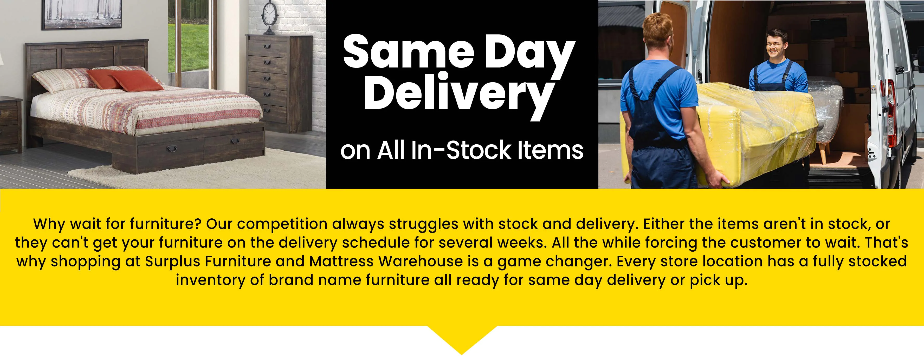 Our furniture delivery trucks are ready to deliver your furniture the same day you purchased it!